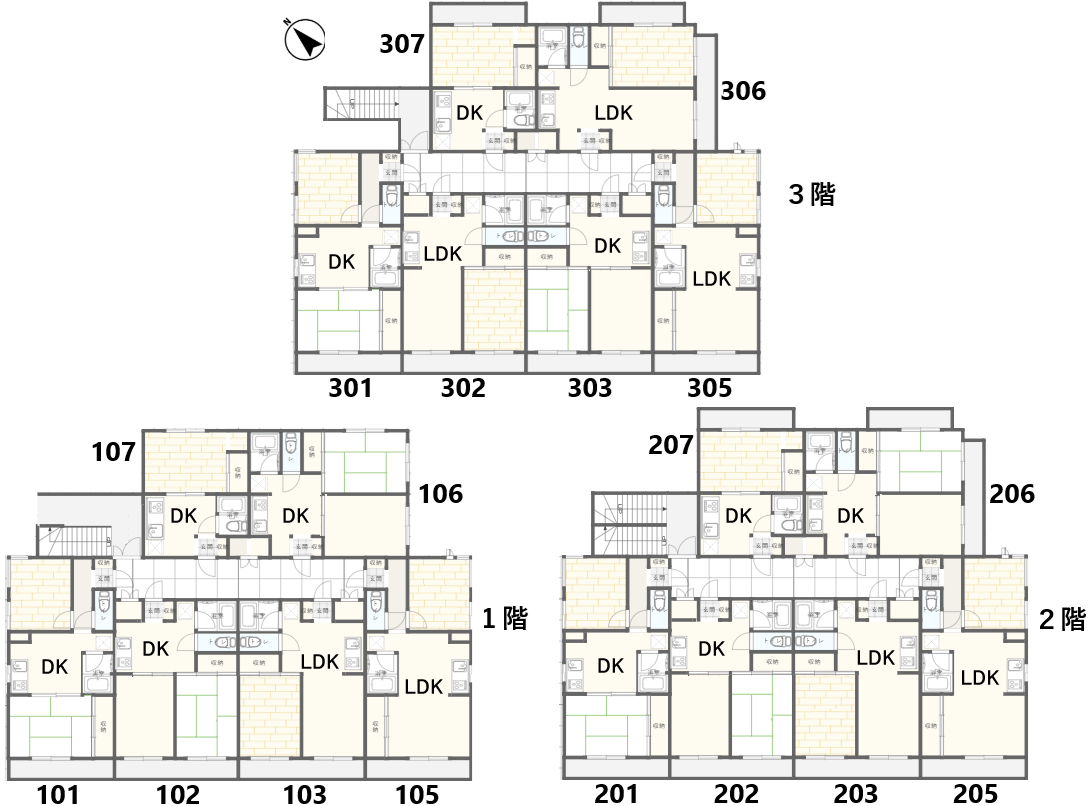 | 間取り | 1DK、1LDK、2DK |